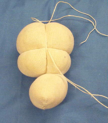 Fischerknoten und legen Sie ihn von unten nach oben um den Puppenkopf.