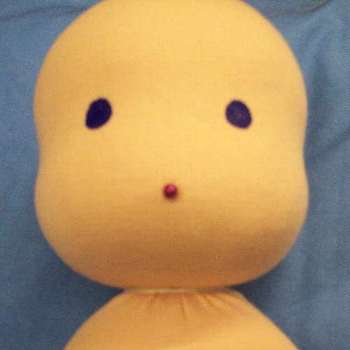 auf die linke Seite setzen - die Puppe schielt dann! |